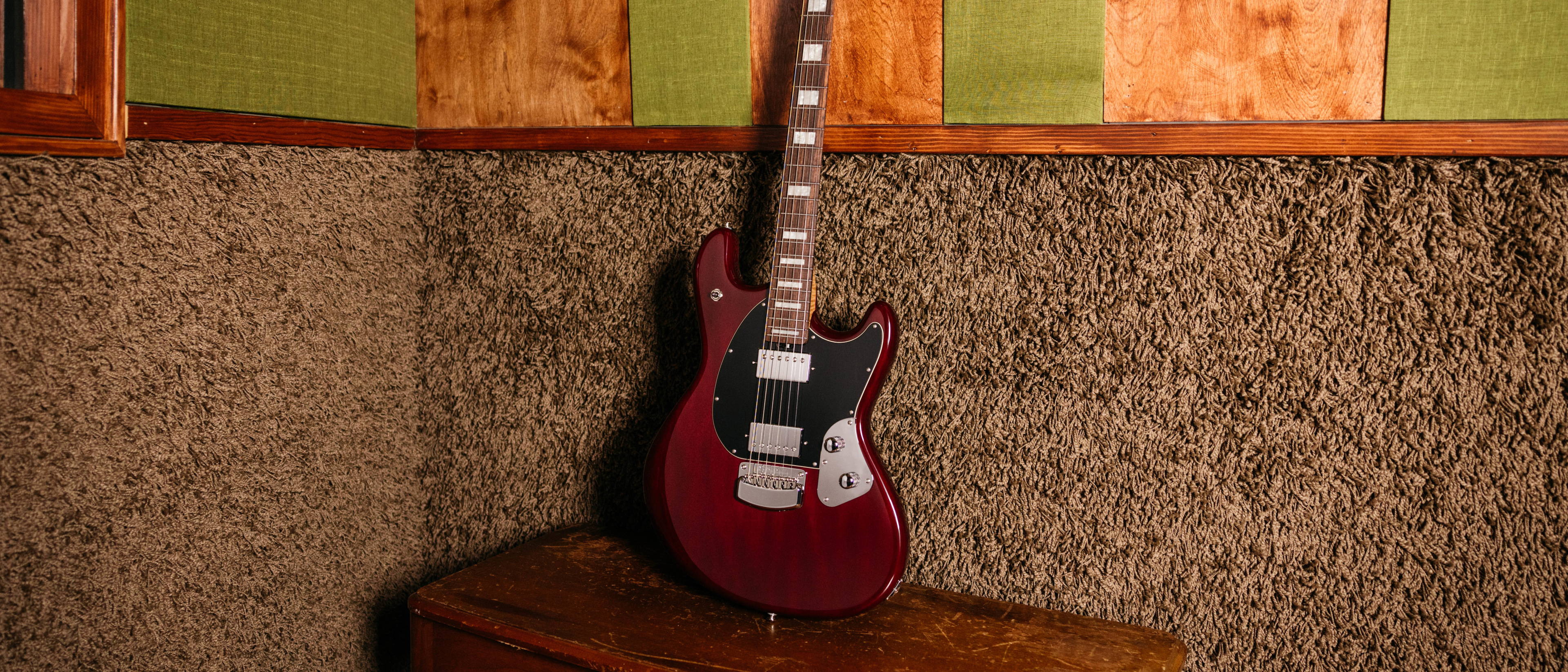 The all-new Ball Family Reserve Baritone StingRay guitar is limited to just 50 units worldwide. With a 27.5" scale length and tuned B-B, this guitar offers exceptional tonal depth and versatility. Its Okoume body in a striking translucent Oxblood finish showcases the wood’s natural beauty, while the roasted figured maple neck with an oil and wax finish ensures smooth playability and stability. The 24 stainless steel frets and rosewood fretboard adorned with white pearloid block inlays provide both durability and classic aesthetics. The hardtail string-through-body bridge ensures solid sustain, and the custom humbucking pickups deliver a powerful, clear tone that captures the rich, extended range of the baritone without getting muddy or woofy.