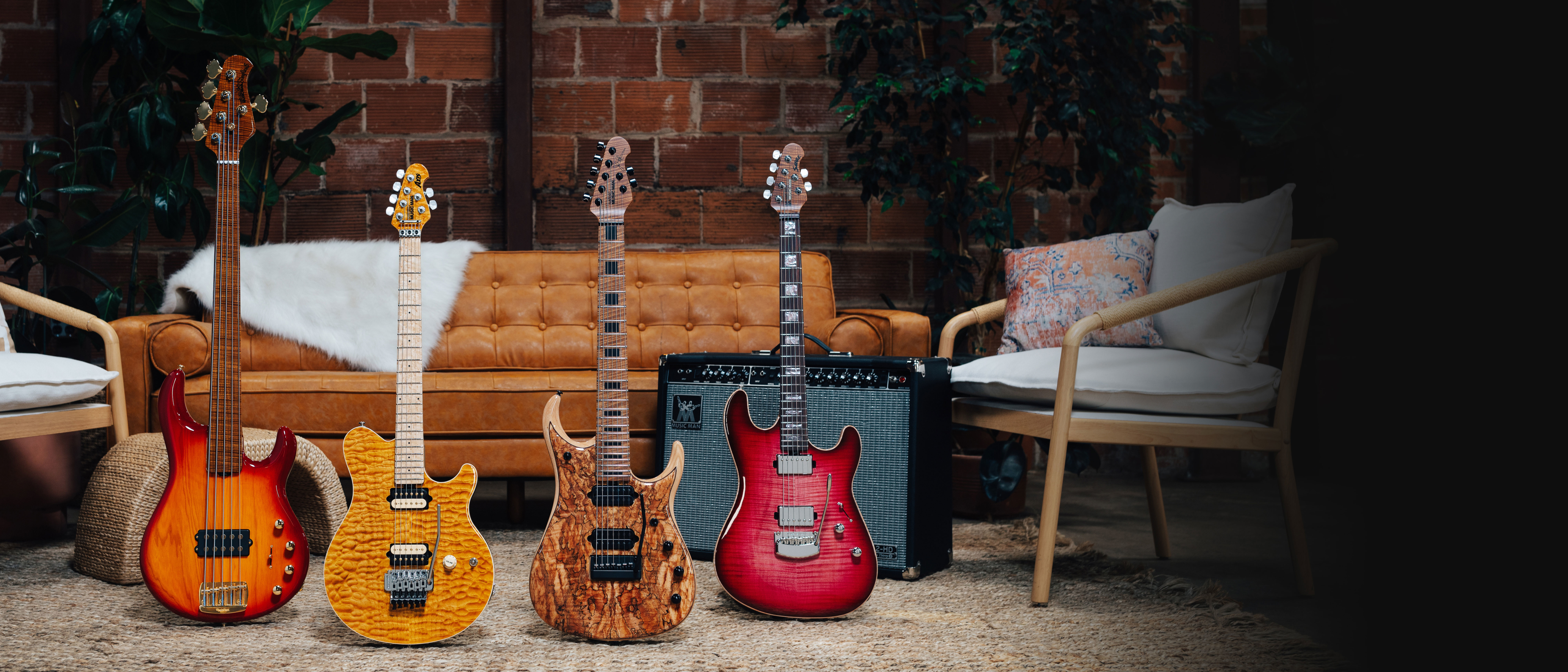 This month features the StingRay Special 5 Fretless Fuego, the Axis Double Trouble, the JP15 7-String Suplex, and the Sabre Half Baked.